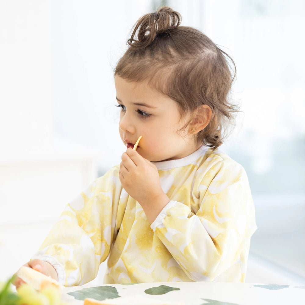 By choosing reusable smocks, families can reduce laundry loads, minimise waste and simplify clean-up during feeding and play.